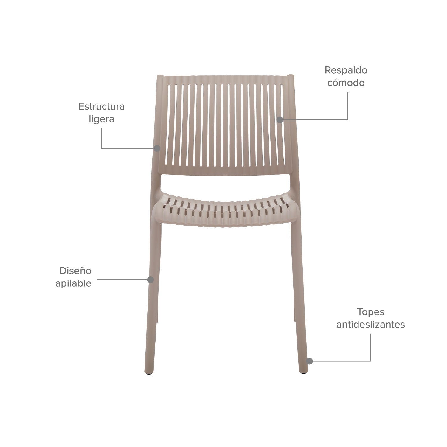 Este set de 4 sillas plásticas color beige es una opción versátil que se adapta a cualquier estilo de decoración y espacio. Están elaboradas con materiales de alta calidad, resistentes y duraderos, perfectos para el uso diario intenso.